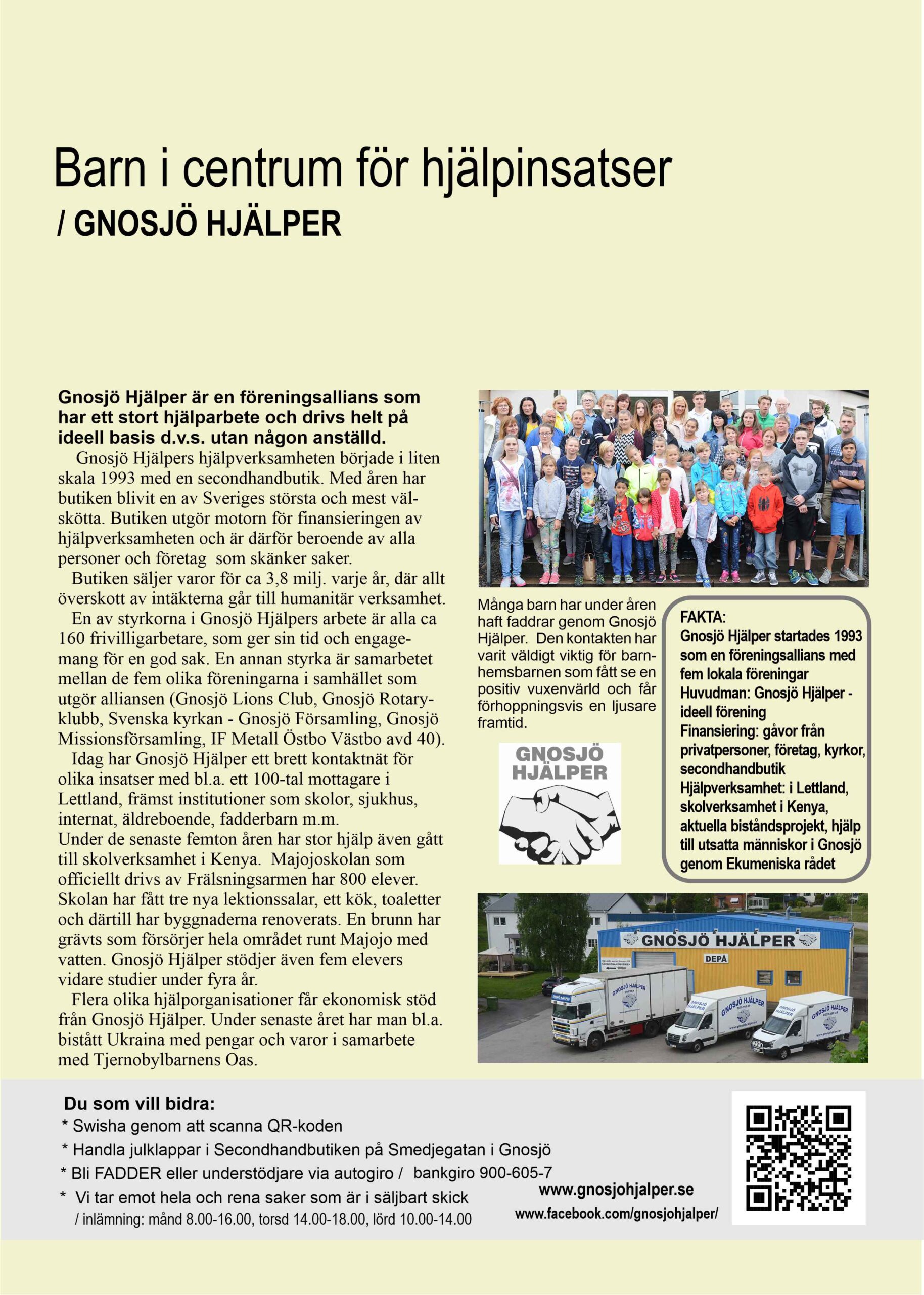 21 nov GNOSJÖ HJÄLPER Postad 15:17 i Artiklar i Utsikt av Thomas Svenningsson Delningar / Arne Henrysson... Läs mer